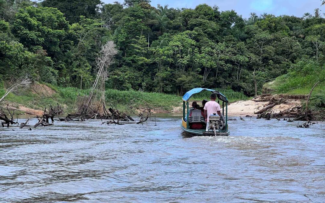 Der Blick aus dem kleinen Flugzeug, das uns von der kolumbianischen Hauptstadt an die südlichste (?) Landesspitze bringt, zeigt einen braunen Fluss, der sich durch unendliches Grün schlängelt: Der Amazonas. Später fahren wir mit dem Boot flussaufwärts, der peruanisch-kolumbianischen Grenze entlang, in das Stammesgebiet der Tikuna. San Martin de Amacayacu, ein Ort mit etwa 650 indigenen Einwohnern, wird zwei Wochen lang unser Zuhause sein.